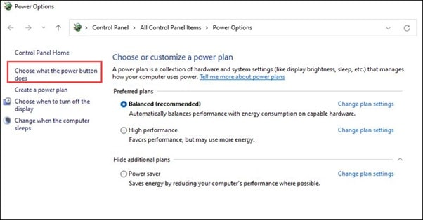 Cliquez sur Choisissez ce que fait le bouton d’alimentation.