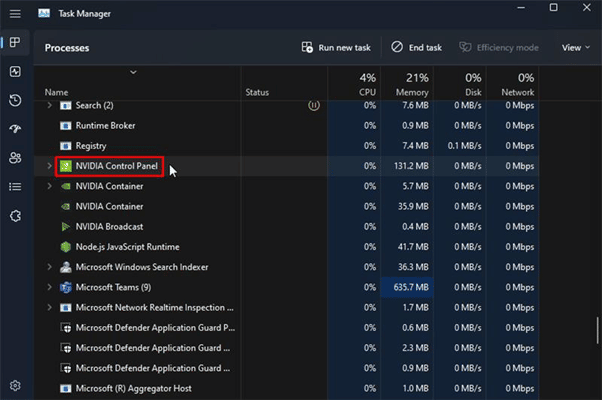 Une fois terminé, essayez d’ouvrir le panneau de configuration NVIDIA. S’il ne s’ouvre pas, mettez fin au processus du conteneur d’affichage NVIDIA.