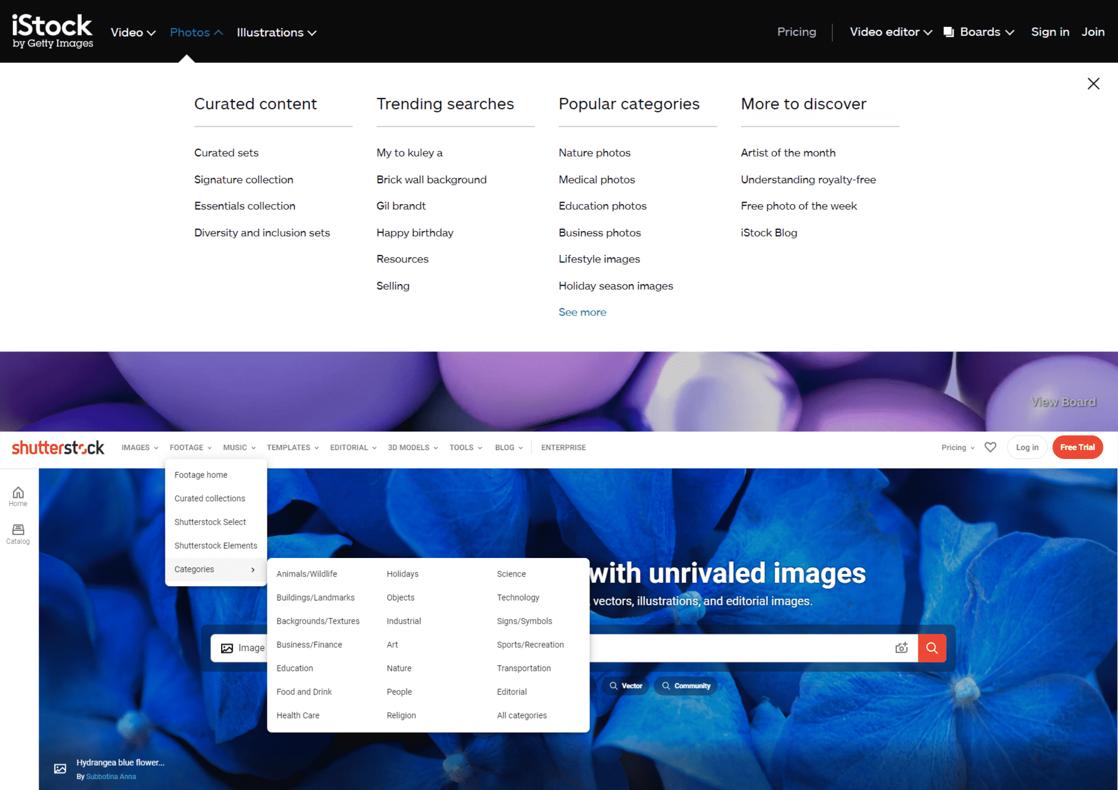 Shutterstock VS iStock : Type de contenu