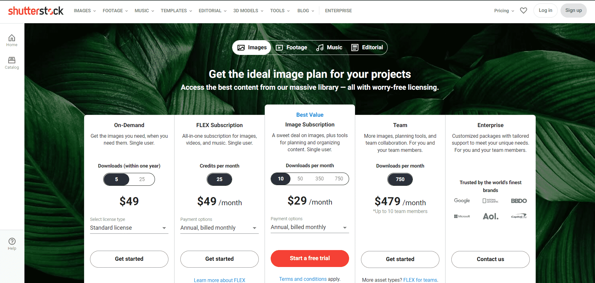 Plans d’abonnement Shutterstock