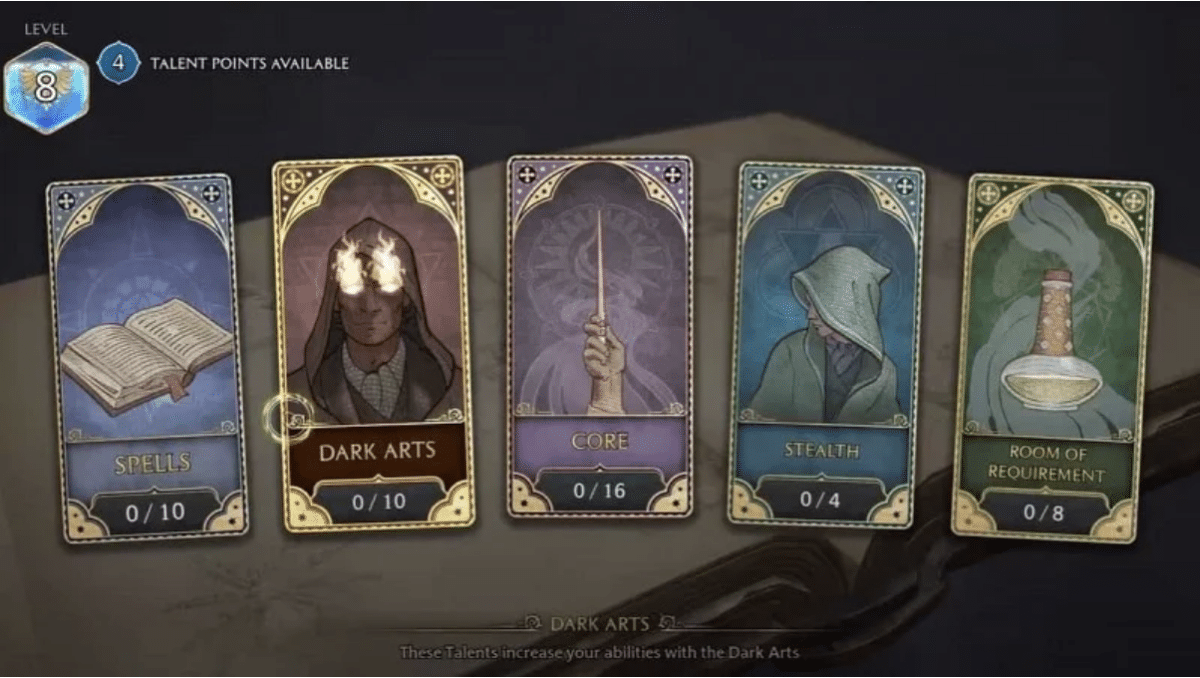 Sorts-tous les talents qui ont été placés dans cette catégorie amélioreront essentiellement vos sorts lancés. Cette catégorie compte dix Talents en son sein. Arts sombres-tous les talents qui ont été mis dans cette catégorie amélioreront vos sorts et malédictions d’arts sombres. Cette catégorie compte dix Talents en son sein. Core-tous les talents qui ont été placés dans cette catégorie amélioreront l’efficacité globale de votre personnage. Cette catégorie compte dix-sept Talents en son sein. Discrétion-tous les talents qui ont été placés dans cette catégorie amélioreront la capacité de votre personnage à se faufiler. Cette catégorie compte quatre talents en elle-même. Room of Requirements – tous les talents qui ont été mis dans cette catégorie amélioreront les capacités de votre personnage dans la Room of Requirements. Cette catégorie compte huit Talents en son sein.