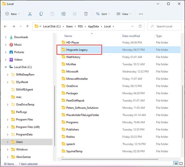 Recherchez le dossier Hogwarts Legacy et ouvrez-le.