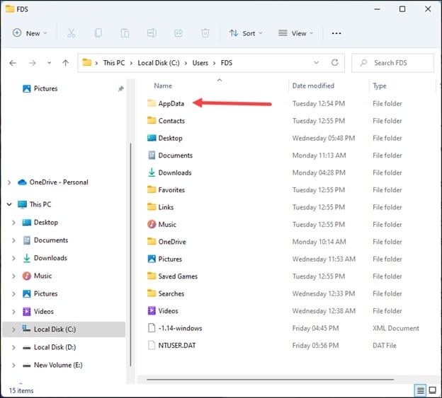Ouvrez Ce PC et accédez au C Drive. Recherchez le dossier Utilisateurs et ouvrez-le. Ouvrez maintenant le dossier avec votre nom d’utilisateur. Recherchez le dossier AppData et ouvrez-le.