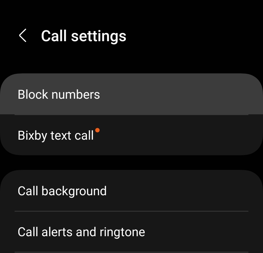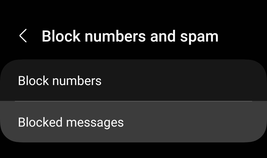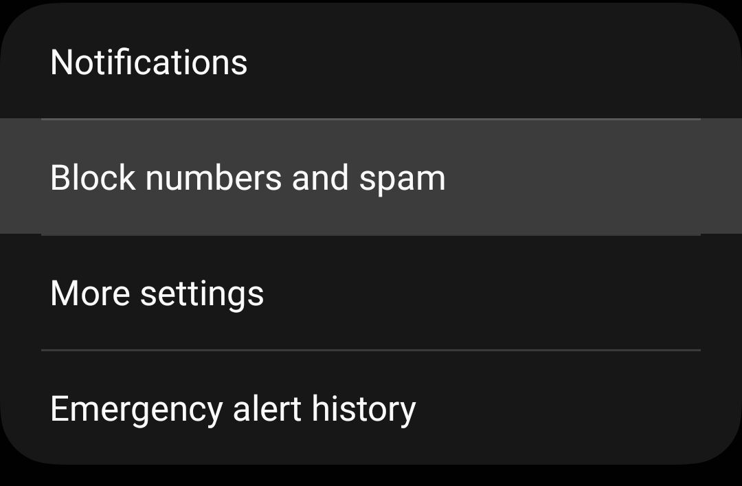 Faites défiler les options jusqu’à ce que vous trouviez une section intitulée Bloquer les numéros ou les spams et appuyez dessus pour accéder au menu suivant.