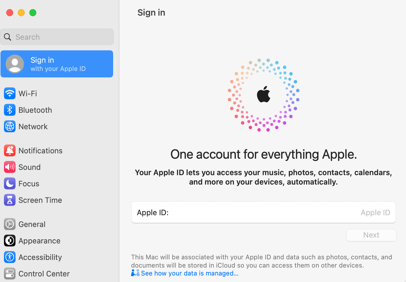 Si vous utilisez un Mac avec macOS Ventura ou version ultérieure, accédez au menu Apple > Système Paramètres. Dans la barre latérale gauche, en haut, vous verrez l’option Se connecter avec votre identifiant Apple. Cliquez dessus et entrez votre identifiant Apple et votre mot de passe.