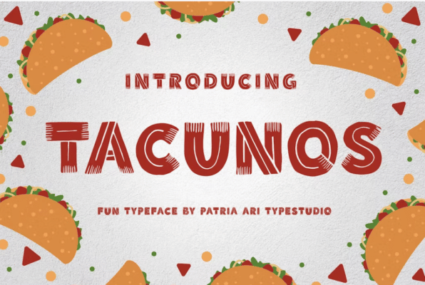 Tacunos est une police d’affichage comique qui est un choix idéal pour des projets tels que des titres de couverture de livre, des marques de logo, des cartes d’invitation, des conceptions de papeterie , et événements spéciaux. Cette police est idéale pour les devis commerciaux, les cartes de menu des centres de restauration rapide, les décorations pour la maison et bien plus encore.