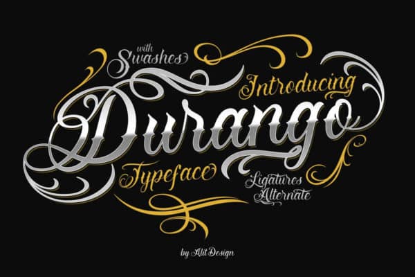 Durango est un style de police de script de tatouage du Mexique. Il reproduit les styles de marque d’Amérique latine.