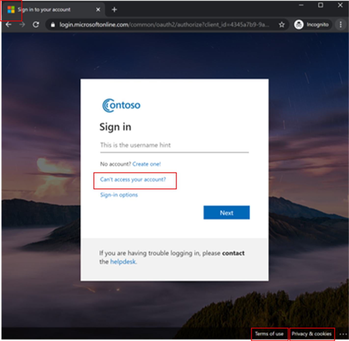 Microsoft met à jour le composant de marque de l’entreprise de la page de connexion Azure Active Directory (Azure AD) pour activer les fonctionnalités de personnalisation pour la réinitialisation en libre-service du mot de passe (SSPR), les liens hypertexte de pied de page et le favicon.