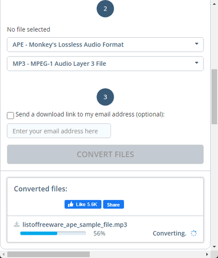 È un altro semplice sito Web di conversione audio da APE a MP3 che consente agli utenti di convertire in batch i file audio APE in formato MP3.