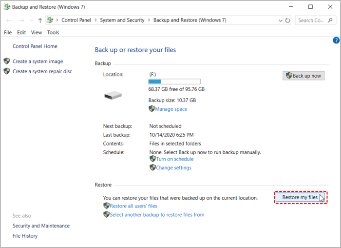 Con tutti i metodi affidabili condivisi in questo blog, ora sai come recuperare i file cancellati dall’unità flash. La prima cosa che devi fare dopo aver perso le tue foto è controllare se hai un backup sul tuo sistema. Se disponi di un backup, ripristinalo da lì utilizzando la funzione Backup e ripristino di Windows.