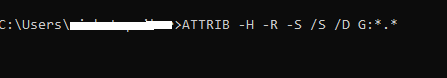 Digita ATTRIB-H-R-S/S/D G:*.* e fai clic su Invio.