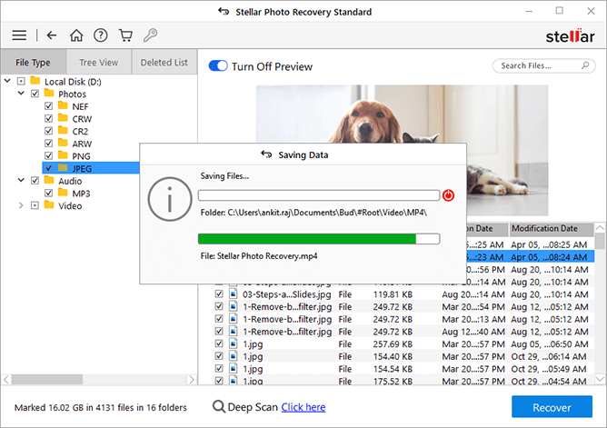 Ora fai clic su Scansione per avviare il processo di recupero. Una volta completato il processo, puoi visualizzare l’elenco dei file multimediali recuperabili e puoi visualizzare in anteprima le foto.