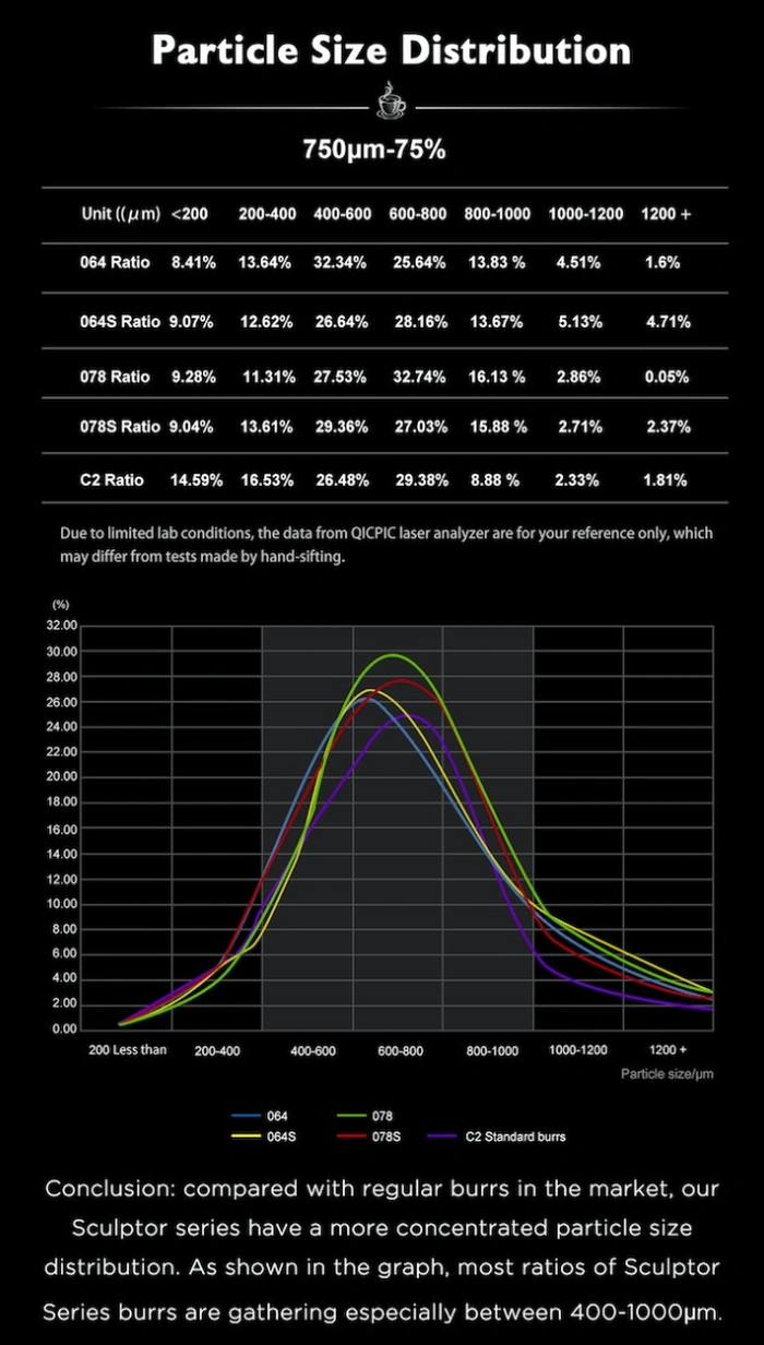 “Dopo aver regolato decine di dati CNC, abbiamo finalmente progettato le nostre frese Turbo che possono tagliare i chicchi in modo rapido e uniforme in 3 strati e ridurre le multe causate dalla spremitura dei chicchi di caffè. Con le innovative macine piatte ben progettate, adatte alla macinatura fine richiesta dall’espresso, e allo stesso tempo forniscono un’elevata uniformità per il pour over. È un tuttofare compatibile sia con l’espresso che con il pour over.”