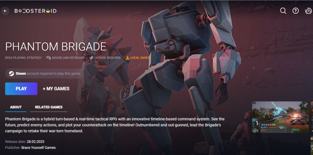 Boosteroid fornisce un mezzo per giocare a giochi come Phantom Brigade senza richiedere alcuna installazione di software aggiuntivo sul tuo dispositivo. Ciò elimina le preoccupazioni relative al fatto che il tuo Mac soddisfi i requisiti di sistema o disponga di spazio di archiviazione sufficiente per il gioco. Tutto ciò che è necessario per giocare a Phantom Brigade è un Mac, un account Boosteroid e una connessione Internet. Questo post approfondisce in dettaglio come giocare online tramite il tuo browser.