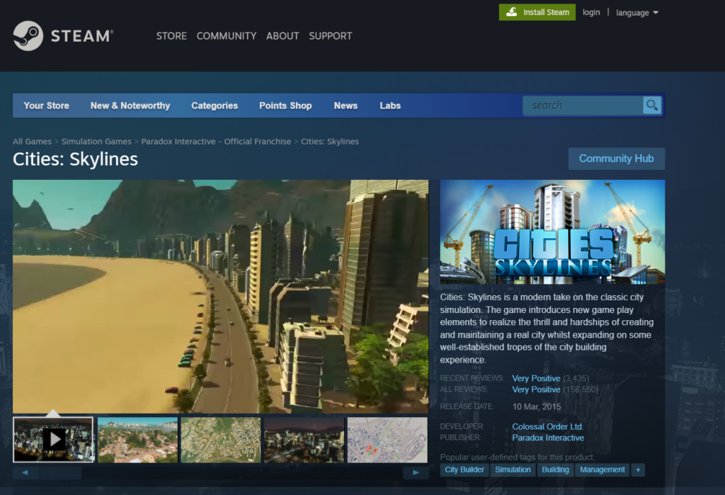 Cities: Skylines è un gioco che incorpora con successo una varietà di elementi di gioco del classico genere di costruzione di città per catturare la gioia e la lotta per stabilire e gestire una vera metropoli. I giocatori devono trovare un equilibrio tra l’economia della città e i costi per fornire servizi di base come istruzione, acqua, energia, polizia, protezione antincendio, assistenza sanitaria e altro ancora. Il gioco non ha un obiettivo preciso ed è completamente aperto, il che lo rende coinvolgente, soprattutto per quelli di voi che amano essere creativi.
