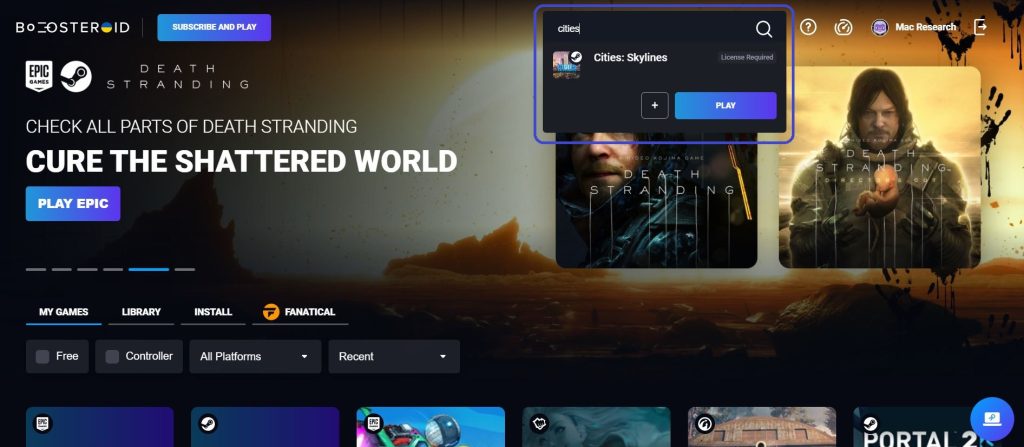 1. Crea un account Boosteroid o utilizza il tuo account Google per iscriverti a Boosteroid (tieni presente che Boosteroid supporta solo la versione Steam di Cities: Skylines).