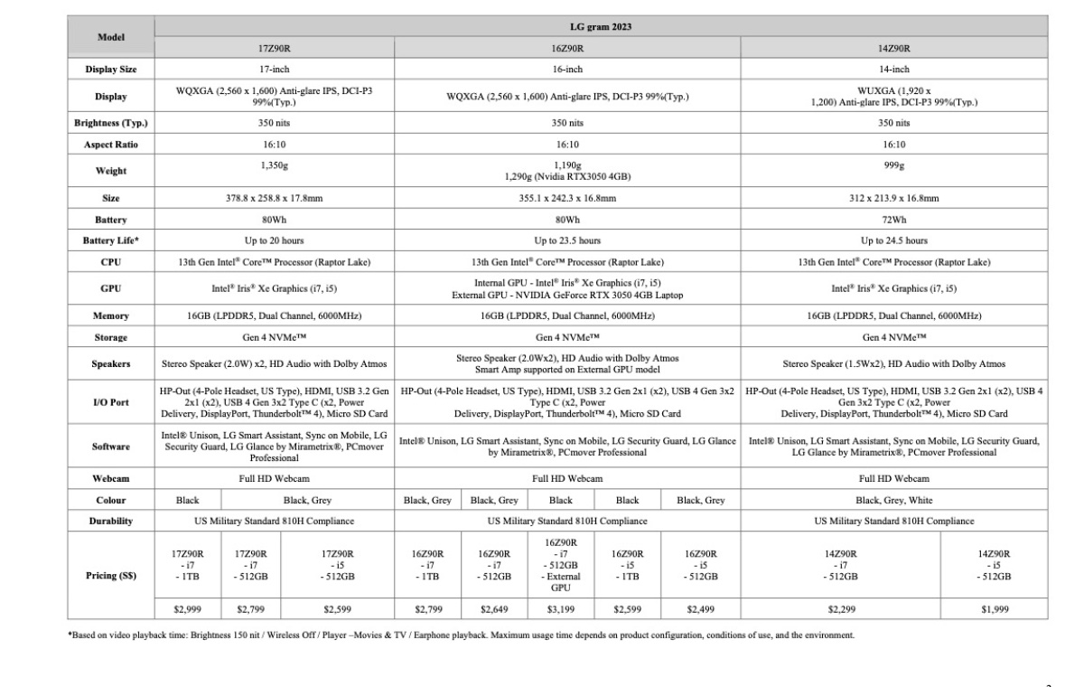 Oltre ai nuovi modelli Style e Ultraslim, ci sono quattro nuovi modelli da 17 pollici, 16 pollici e 15 pollici e modelli da 14 pollici (17Z90R, 16Z90R, 15Z90R e 14Z90R).