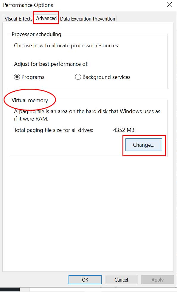 Nella scheda Avanzate fai clic su Cambia in Memoria virtuale. In Drive [Etichetta volume], fai clic sull’unità che contiene il file di paging che desideri modificare. In Dimensioni del file di paging per l’unità selezionata, fai clic su Dimensioni gestite dal sistema > Fai clic su Imposta. Se questa opzione non è stata contrassegnata, riavvia il PC dopo averlo contrassegnato. Ora, se la dimensione del file di paging del sistema viene utilizzata per essere Gestito dal sistema, fai clic su Dimensioni personalizzate in Dimensioni del file di paging per l’unità selezionata.