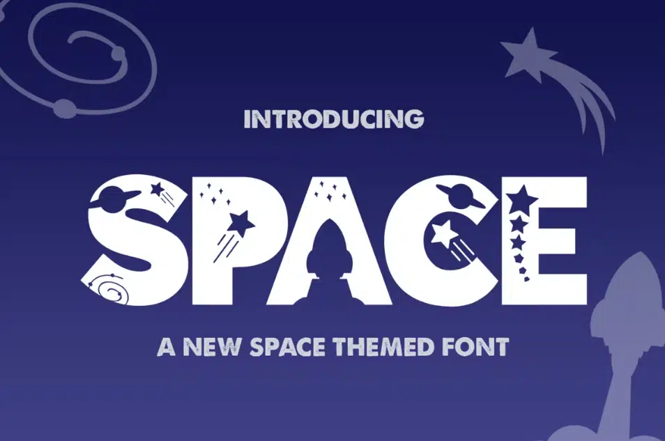 Il Space Font è un carattere tipografico interessante. Con un design che potresti vedere su un libro di fiabe per bambini o un poster di un film, mentre è a tema spaziale, potrebbe facilmente trovare la sua strada nel branding, nei loghi o persino nei biglietti di auguri.