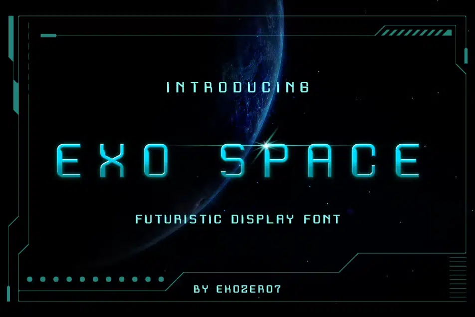 Con il suo design futuristico, il Exo Space Futuristic Display Font è un’ottima scelta che ha molti usi diversi. Dal design del logo al marchio, alla confezione del prodotto o altro, il carattere Exo Space può portare il tuo lavoro a nuovi e sorprendenti livelli. Questo è uno dei migliori font wide space.