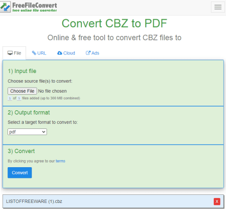 วิธีแปลง CBZ เป็น PDF ออนไลน์บน FreeFileConvert?