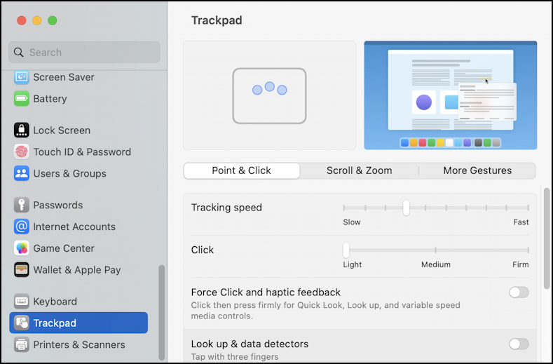 การตั้งค่าและค่ากำหนดของแทร็กแพดของ MACOS