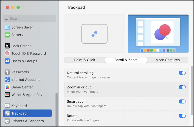 ฉันสาบานได้เลยว่าการบีบนิ้วเพื่อซูมเคยทำงานบน MacBook Air ของฉัน แต่ตอนนี้ไม่ได้ทำอะไรเลย นี่เป็นการตั้งค่าหรือไม่? ฉันจะเปิดใช้งานการบีบนิ้วเพื่อซูมบน MacBook ได้อย่างไร ใช้ MacOS 13