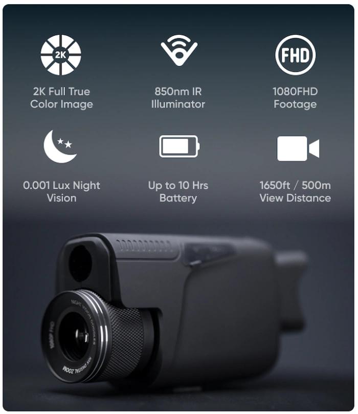 หากคุณกำลังค้นหาระบบการมองเห็นตอนกลางคืนระดับทหารที่มีขนาดเล็กพอที่จะใส่ในกระเป๋าของคุณ คุณอาจสนใจกล้องตาข้างเดียวสำหรับการมองเห็นในตอนกลางคืน Duovox Ultra ซึ่งเปิดตัวโดย Kickstarter ในเดือนนี้ และระดมทุนไปแล้วกว่า 75,000 ดอลลาร์จากผู้สนับสนุนกว่า 450 ราย ซึ่งแคมเปญนี้ยังมีเวลาเหลืออีก 52 วัน สามารถให้สีที่สมบูรณ์ใน แสงน้อย และนำเสนอ ไฟส่อง IR 7 ระดับ ในที่มืดสนิท ตาข้างเดียวสำหรับการมองเห็นตอนกลางคืนมีระยะสูงสุด 500 ม. และสามารถใช้งานได้นานถึง 10 ชั่วโมงต่อการชาร์จหนึ่งครั้ง และให้ความละเอียด 1080FHD