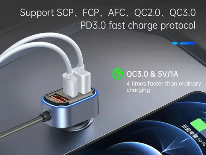 All-Aport Multi Port Car Charger เป็นเครื่องชาร์จพลังงานอเนกประสงค์ที่รองรับการชาร์จอุปกรณ์หลายเครื่องพร้อมกัน เป็นฮับการชาร์จแบบขยายที่มีเอาต์พุตกำลังไฟ 65W ซึ่งช่วยให้คุณชาร์จสองรายการพร้อมกันด้วยความเร็วที่เร็วที่สุดเท่าที่จะเป็นไปได้ การออกแบบภายนอกทำให้ง่ายต่อการพกพาและใช้งานในรถของคุณ ไม่ต้องมีที่ชาร์จในรถอีกต่อไปสำหรับทุกคนในรถของคุณ!