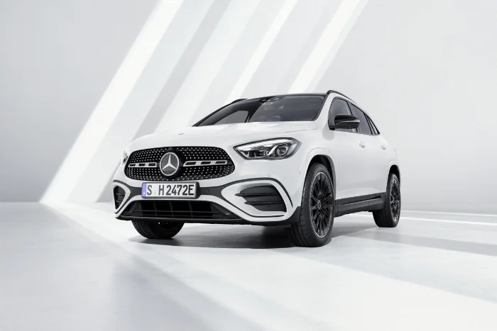 Mercedes-Benz ยกระดับ GLA SUV ขนาดกะทัดรัดอย่างมีนัยสำคัญด้วยนวัตกรรมมากมายและอุปกรณ์มาตรฐานที่ครบครันยิ่งขึ้น กระจังหน้าแบบใหม่พร้อมบานเกล็ดแนวตั้งและครีบแนวนอนช่วยเสริมบุคลิกอันทรงพลัง ฝากระโปรงหน้าพร้อม Power Dome ที่แนะนำอย่างสุขุมเน้นย้ำถึงรูปลักษณ์ที่มั่นใจ นอกเหนือไปจากกันชนหน้าที่ออกแบบใหม่พร้อมการป้องกันใต้ช่องมองภาพ
