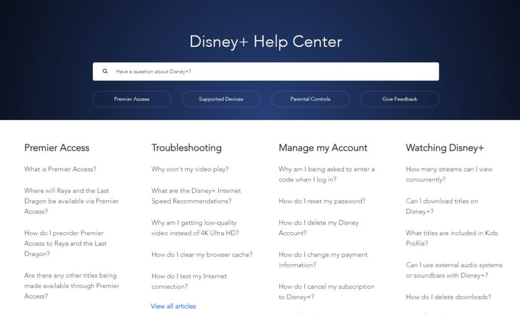 ไปที่ หน้าสนับสนุน Disney+ และติดต่อทีมงานเพื่อรายงานปัญหาที่คุณ กำลังประสบขณะรับชมภาพยนตร์หรือรายการ จัดเตรียมภาพหน้าจอของข้อผิดพลาด ชื่อรายการ และภูมิภาคของคุณ เพื่อให้ Disney+ ประเมินสถานการณ์ได้ง่ายขึ้น
