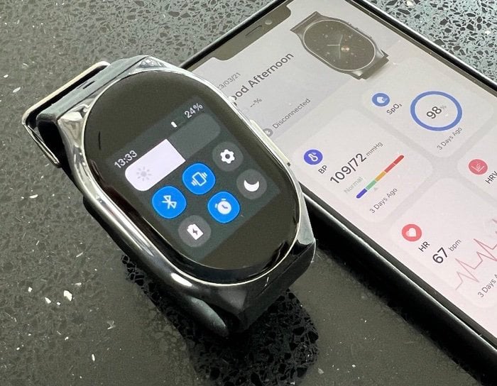 หน้าจอสัมผัสที่ตอบสนองช่วยให้คุณเข้าถึงการตั้งค่านาฬิกาอัจฉริยะได้โดยการปัดลงจากด้านบนเพื่อเข้าถึงแถบเลื่อนความสว่างหน้าจอ บลูทูธ โหมดประหยัดแบตเตอรี่ นาฬิกาปลุก โหมดกลางคืน และการตั้งค่าทั่วไป การปัดหน้าจอสัมผัสไปทางซ้ายจะแสดงมาตรวัดสุขภาพประจำวันของคุณ ในขณะที่การปัดไปทางขวาจะทำให้เข้าถึงเครื่องวัดความดันโลหิต อัตราการเต้นของหัวใจ และความอิ่มตัวของออกซิเจนในเลือดได้ง่าย ซึ่งคุณสามารถอ่านค่าได้โดยขึ้นอยู่กับมาตรวัดที่คุณต้องการตรวจสอบ การปัดขึ้นจากด้านล่างของหน้าจอสมาร์ทวอทช์จะช่วยให้คุณเข้าถึงข้อความและการแจ้งเตือนจากแอปพลิเคชันของนาฬิกาได้อย่างรวดเร็ว