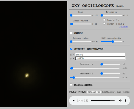 physics-zone.com เป็นเว็บไซต์โปรดของฉันเพราะมี ฟังก์ชั่นออสซิลโลสโคปที่จำเป็นทั้งหมด นอกจากนี้ยังให้ผู้ใช้ทำงานกับการกำหนดค่าออสซิลโลสโคปที่แตกต่างกันสามแบบ