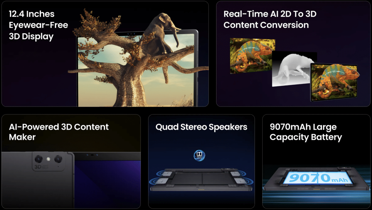 ในการแปลงเนื้อหา 2 มิติเป็น 3 มิติ แท็บเล็ตจะใช้อัลกอริทึมการเรียนรู้เชิงลึกและโครงข่ายประสาทเทียมขั้นสูง