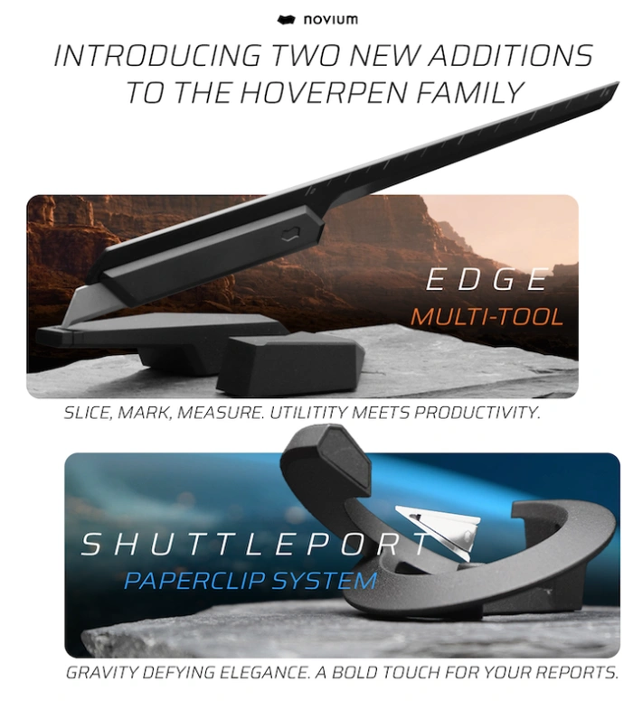 ทีมออกแบบจาก Novium ซึ่งตั้งอยู่ในเมืองคาลการี ประเทศแคนาดา ได้กลับมาที่ Kickstarter อีกครั้งเพื่อเปิดตัวเครื่องมืออเนกประสงค์ Novium Edge และ Shuttleport ที่ไม่เหมือนใคร สร้างขึ้นเพื่อจัดหาเครื่องมือที่ออกแบบตามหลักสรีรศาสตร์ซึ่งสามารถใช้วัดได้ ทำเครื่องหมายและแบ่งส่วนที่ “ประโยชน์ใช้สอยตรงตามประสิทธิภาพ” กล่าวว่าผู้สร้างการออกแบบที่ท้าทายแรงโน้มถ่วงยังคงต่อยอดผลิตภัณฑ์ของบริษัท และสร้างจากการออกแบบเช่น Hoverpen จาก 2022