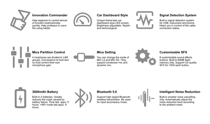 “อเนกประสงค์: อินเทอร์เฟซเสียง M1 ทำหน้าที่เป็นส่วนเสริมของพีซีหรือโทรศัพท์ของคุณ ตราบเท่าที่ยังเชื่อมต่อกับพีซีหรือโทรศัพท์ของคุณ อุปกรณ์นั้นจะทำหน้าที่เป็นอุปกรณ์อินพุตและเอาต์พุตเสียง ใช้งานได้เกือบทุกแอพพลิเคชั่น มันเป็นไดรฟ์ฟรี ปลั๊กแอนด์เพลย์ เราออกแบบสิ่งนี้โดยเฉพาะเพื่อให้คุณไม่ต้องติดตั้งอุปกรณ์เสียงแบบเดิมๆ ที่น่าเบื่อ ช่วยให้คุณมีสมาธิกับการผลิตเสียงของคุณได้ เหมาะอย่างยิ่งสำหรับการใช้งานกับแอปพลิเคชันซอฟต์แวร์ยอดนิยมและแพลตฟอร์มเครือข่าย เช่น OBS, Audacity, Adobe Audition และแพลตฟอร์มวิดีโอ เช่น YouTube, Twitch, Tiktok, Facebook Live และ Uplive”