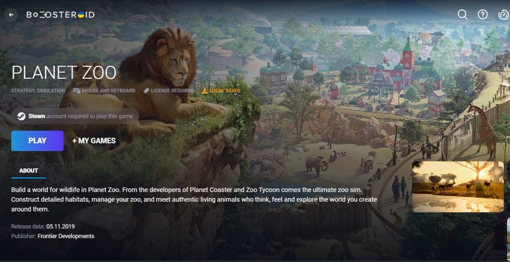 Boosteroid ช่วยให้คุณเล่นเกมอย่าง Planet Zoo ได้โดยไม่จำเป็นต้องติดตั้งซอฟต์แวร์เพิ่มเติมบนอุปกรณ์ของคุณ เนื่องจากไม่จำเป็นต้องติดตั้งภายในเครื่อง คุณจึงไม่ต้องสนใจว่า Mac ของคุณตรงตามความต้องการของระบบหรือไม่ หรือมีพื้นที่เก็บข้อมูลเพียงพอสำหรับเกมหรือไม่ ในการเล่น Planet Zoo สิ่งที่คุณต้องมีคือ Mac, บัญชี Boosteroid และการเข้าถึงอินเทอร์เน็ต วิธีเล่นเกมออนไลน์บนเบราว์เซอร์ของคุณมีเนื้อหาโดยละเอียดในโพสต์นี้