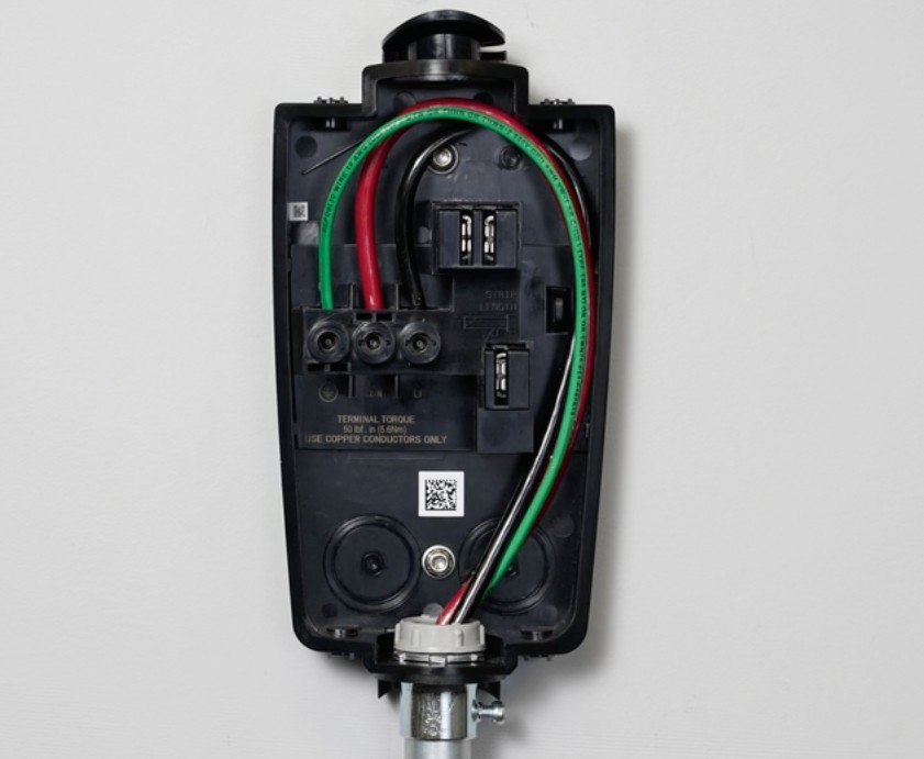เมื่อคุณประกอบกล่องใส่สายชาร์จของ Tesla Wall Charger แล้ว ก็ถึงเวลาเดินสายไฟก่อนที่จะปิด Wall Charger และตั้งค่าสำหรับการใช้งานครั้งแรก ขั้นตอนต่อไปจะเป็นการเดินสายไฟ หลังจากเลือกทางเข้าของสายไฟแล้ว คุณจะต้องดึงตัวนำเข้าไปในกล่องเคเบิล