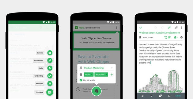 Evernote ทำให้สิ่งต่างๆ เป็นเรื่องง่าย โดยคุณสามารถแนบไฟล์ PDF, ภาพถ่าย และ เอกสาร Microsoft Office Evernote ทำหน้าที่เป็นผู้วางแผนกิจกรรม คุณสามารถใช้มันเพื่อจดความคิดของคุณและเปลี่ยนเป็นบันทึกช่วยจำ Evernote จะช่วยให้คุณสามารถจัดระเบียบบันทึกช่วยจำ ใบเรียกเก็บเงิน ใบแจ้งหนี้ และใบเสร็จรับเงิน