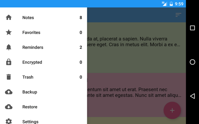 My Notes เป็นสมุดบันทึกที่สวยงามและออกแบบอย่างหรูหราสำหรับอุปกรณ์ Android ซึ่งมาพร้อมกับการซิงค์บนคลาวด์ของ Google ไดรฟ์ แอปพลิเคชั่นนี้ได้ทำเครื่องหมายว่าเป็นหนึ่งในแอปจดบันทึกที่ดีที่สุดสำหรับ Android คุณสามารถเพลิดเพลินกับคุณสมบัติต่าง ๆ เช่น; เพิ่มการเตือนความจำ จัดระเบียบโน้ตตามโฟลเดอร์ และบันทึกและค้นหาโน้ต คุณสมบัติที่น่าทึ่งที่สุดคือคุณสามารถล็อคแอพเพื่อป้องกันผู้บุกรุกความเป็นส่วนตัว